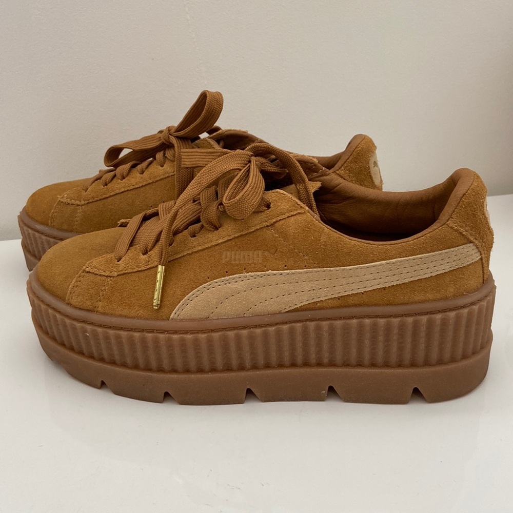 Puma Fenty sneakers made by Rihanna. Really great shape. Platform. Tan in color. Brand new. Worn once