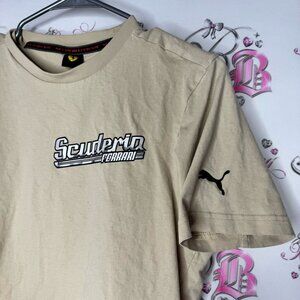Puma Ferrari tshirt tan sand graphic racing logo car Ferrari white black white