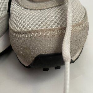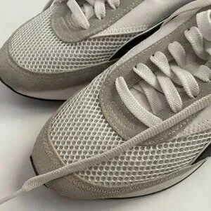 Breathable white mesh upper with suede overlays