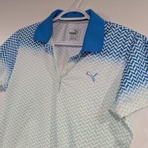 Puma Golf Chevron Print Lightweight Polo Tee Blue White Size Small