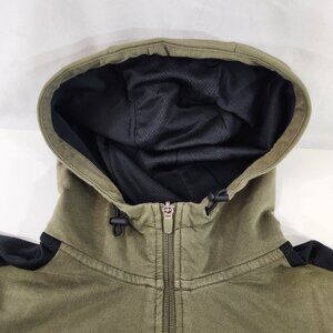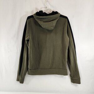 Puma Hooded Full Zip Sweatshirt Mens Size Medium Olive Green Black Stripe Logo