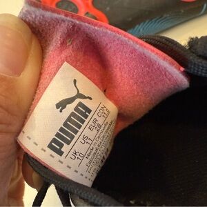 Stylish Puma sneakers for kids. Black and blue design. Comfortable and durable for active play.