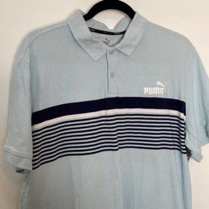 Puma Men Blue White Striped Collared Button Down Polo Short Sleeve Shirt Size XL