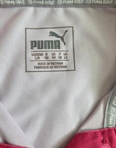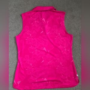 Vibrant pink sleeveless polo shirt by Puma. Features a subtle floral pattern and button-up front.