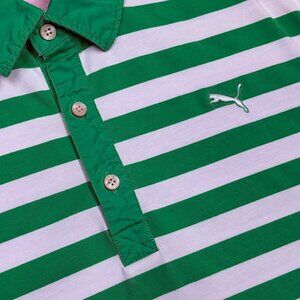 Puma Sport Green & White Striped Pattern Short Sleeve Polo Shirt