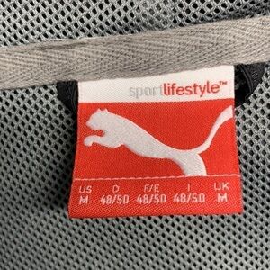 Features: 2 side zippered pockets / elasticized waist and wrists / ventilation under arm pits / hood with toggle / Puma branded pull at zipper / Puma logo embroidered on chest and outlined at the lines on sleeve / Y2K full front zipper