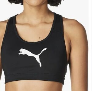 Comfortable black bra with bold Puma logo. Ideal for fitness activities.