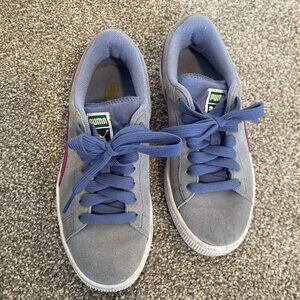 Puma Suede Grey Blue Purple Sneakers Shoes School Kids Girls Youth Size 4