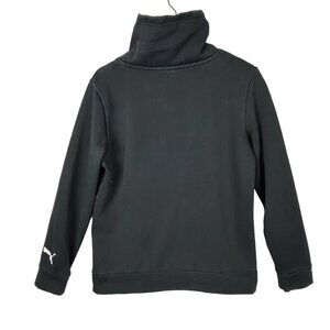 Puma Sweatshirt Women Medium Black Asymmetrical Cowl Neck Fleece Logo Pullover