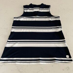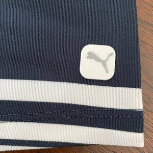 Puma W Cloudspun V Stripe Sleeveless 3/4" Mandarin Collar Golf or Tennis Polo Top in Navy + White - no fabric tag