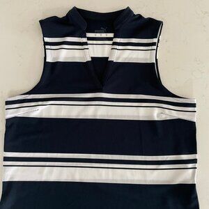 Puma W Cloudspun V Stripe Sleeveless 3/4" Mandarin Collar Golf or Tennis Polo Top in Navy + White - no fabric tag