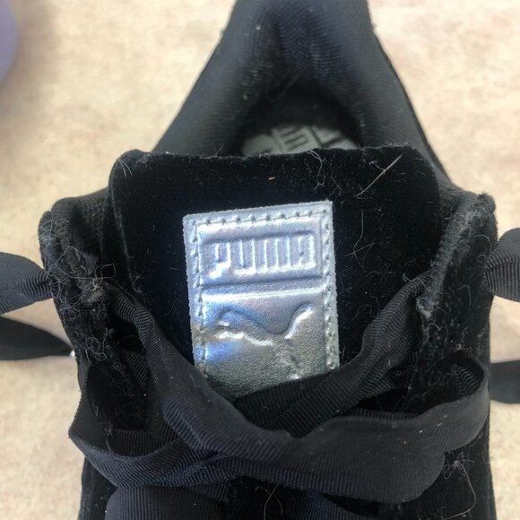 Puma Women's Basket Classic Black Velour Sneaker Ribbon Laces Size 9.5