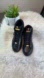 Round toe design with a lace-up closure. Black with golden detailing and embossed crocodile design.