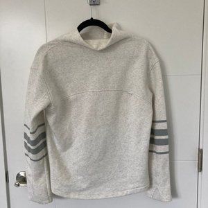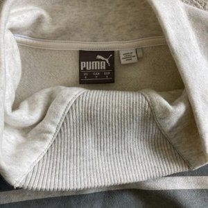 Puma golfing turtleneck sweater. Heather white colour with grey stripes and fleecey interior. Size small