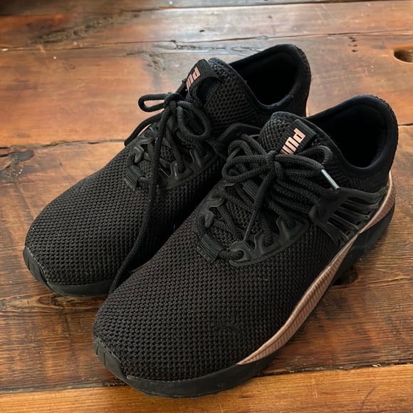 Worn half a dozen times by my daughter until she outgrew them. In great condition. Black mesh with metallic pink accents. Very comfy.