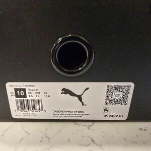Step into bold style with the PUMA x FENTY Creeper Phatty in Black Warm White (SKU 399332 01). These women’s size 10W sneakers are brand new in box and come complete with extra laces . Featuring soft suede uppers, an exaggerated sole, and clean co-branded details, this drop brings Rihanna’s signature edge to your sneaker game.