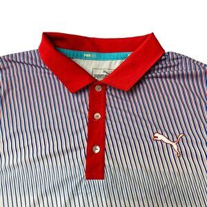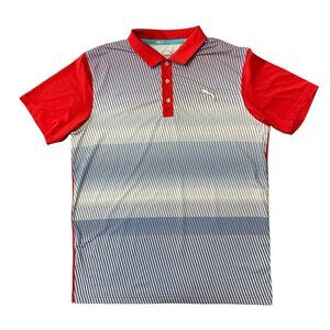 PumaDry Cell Golf Polo Mens Medium Performance PWRCool Red Blue Striped