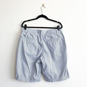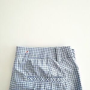 Puma Golf Shorts Flat Front Blue White Checkered Men's Size 34. Two front slash pockets. Two back pockets. Good used condition-there is a small stain on the back waistband-see photo. Please see photos for approximate measurements.