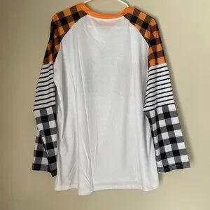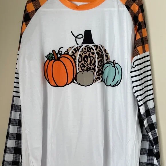Pumpkin Graphic Raglan Top – White / Black / Orange (2XL)