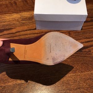 Burgundy plum suede pumps in size 34.5 - comfortable and timeless. Comes with box and dust bag.