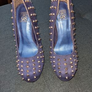 Pumps blue with silver studs 51/2 inch heel size 6 1/2 Speed Limit 98