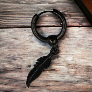 Punk Feather Stainless Steel Plating Drop Single Earring. Feather is removeable and hoop clicks closed.