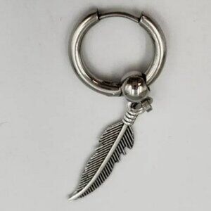 Punk Feather Stainless Steel Plated Silver Tone Drop Earring Single Punk Goth