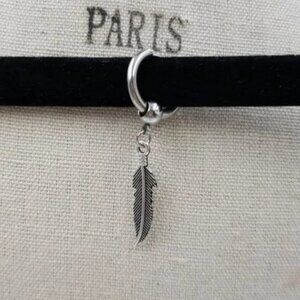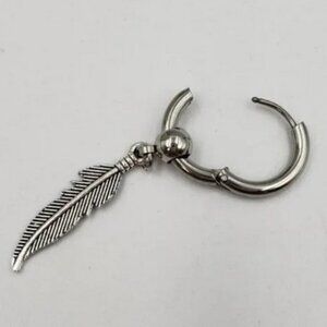 Single Stainless steel feather hoop earring. Feather is removeable Hoop clicks closed Punk Raven Feather
