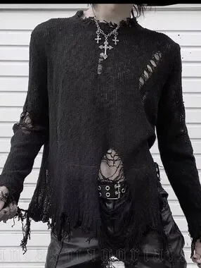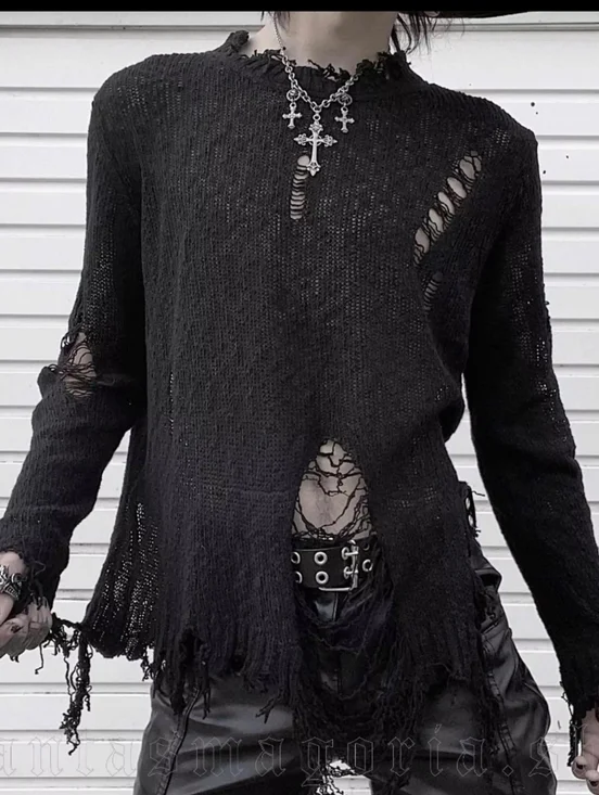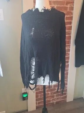 Size medium Black Plague sweater by Punk Rave. This distressed sweater has holes, distressed hem and high cut sides. Such a great top but i don't wear it, so it needs a new home!!