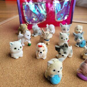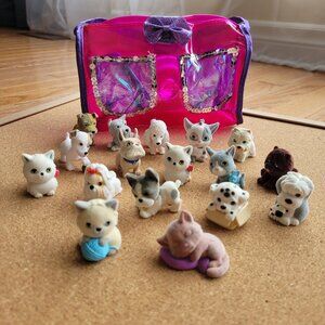 Puppy Kitty In My Pocket Flocked Dogs and Cats Soft Carrying Case Lot of 17