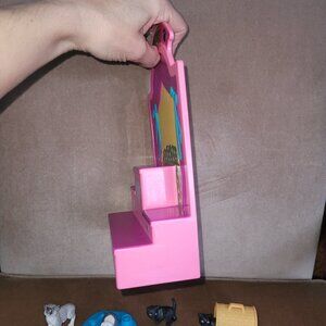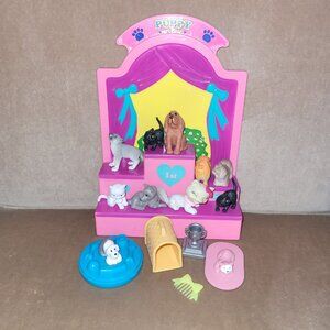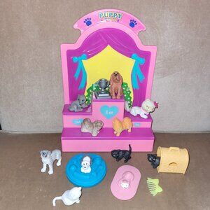Please see pics for these vintage 90s items! May have light signs of wear from play or display. Used, as shown. The stand has some sticker wear, plus the plastic is scuffed and has lost a bit of shine. Some wear on the pets too, plesse see pics, overall a cute little collection. Some Happy Meal versions. As is. As shown, pet themed lot!