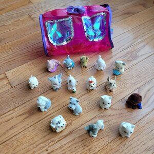 Puppy in My Pocket Lot of 17 with Soft Carrier Cats and Dogs Flocked