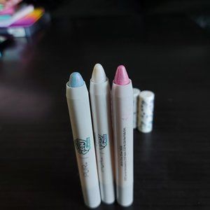 Sticks are creamy and glide on effortlessly, which can also be blended with ease. Highlighter sticks come in iridescent pink, lavender, and gold