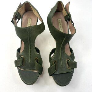 Pura Lopez Shoes Womens Size 38 US 8 Wooden Block Heel Clog Green Leather