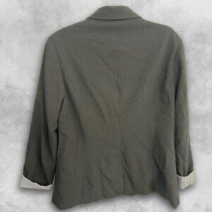 In gently used condition, this blazer retains its polished appearance and structure. Perfect for layering over blouses or dresses, it provides a tailored look that is suitable for both office environments and social events.