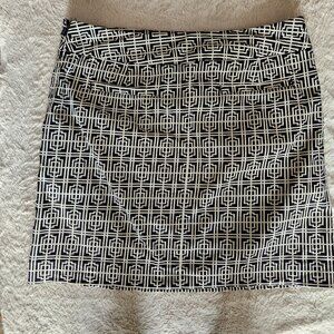 Professional mini skirt in 97% cotton material. Has front functioning pockets, zip and hook closure at hip, and decorative pockets on back.
