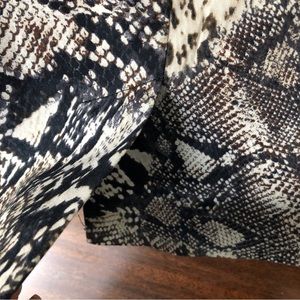 Sexy little mini skirt (not too short). Faux snakeskin. Lined. Would be so classy with a fitted black turtleneck.