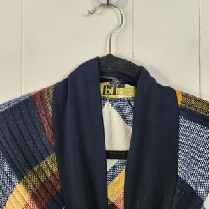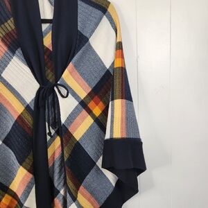 Pure Essence Navy Plaid Poncho Wrap Sweater Scarf XS Small Apres Yoga Outerwear