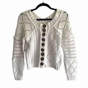 Pure HANDKNIT White Button Front Long Sleeve Cotton Cardigan Sweater XS/S