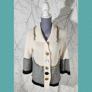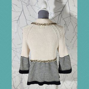 Pure Handknit Chunky Knit Button Front Cardigan w/ Chainlink Detail