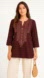 Pure Jill Burgundy Embroidered Tunic - Boho Folk Cottagecore Festival - SP