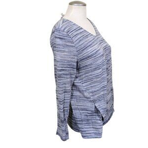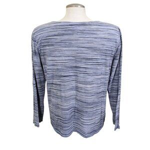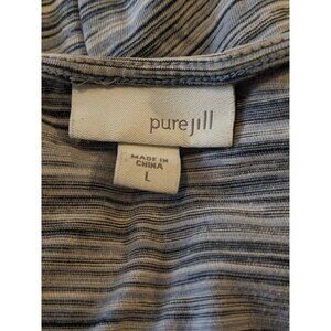 Pure Jill Pullover Top Womens Size L Gray Cotton Striped Long Sleeve Pockets