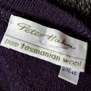 Pure Tasmanian Wool Peter Hahn Deep Purple Aubergine Cardigan Sweater Sz L
