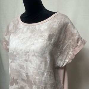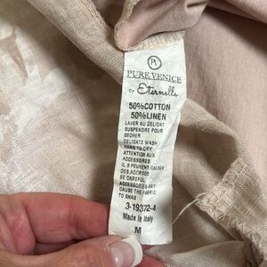 Pure Venice blouse, size medium in next to new condition. Linen front, knit on the back. Elevate your wardrobe with this elegant beige linen top. Perfect for any occasion, it offers a relaxed fit and timeless style.