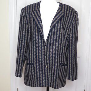 A vintage but still trendy coat. Pure wool and excellent quality. The condition is very good. One small hole on the cuff and some light pilling in certain places. Completely unnoticeable because of the pattern. The shoulder pads add such a cool vintage touch. The size label is missing but the jacket is large.
