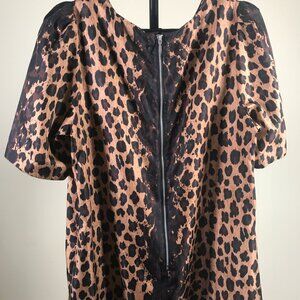 Size Large, Animal Print, 100% Polyester Short Sleeved Shift Dress.