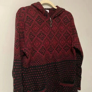 Pure & simple 100% lambswool black red full zip hooded cardigan sweater jacket