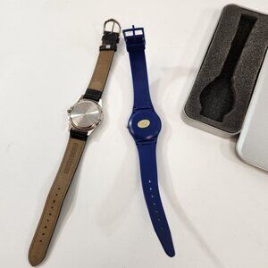Purolator Courier Wrist Watch Lot of 2 Blue & Leather Bands Gift Novelty Vtg