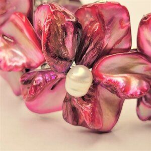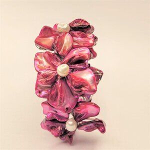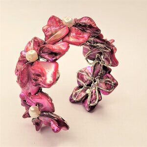 Purple Adjustable Cuff Bracelet with Pearl and Mother Of Pearl Shell Bangle -NEW