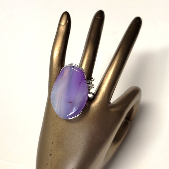 Purple Agate Ring Adjustable Band Handmade Semi Precious Ring